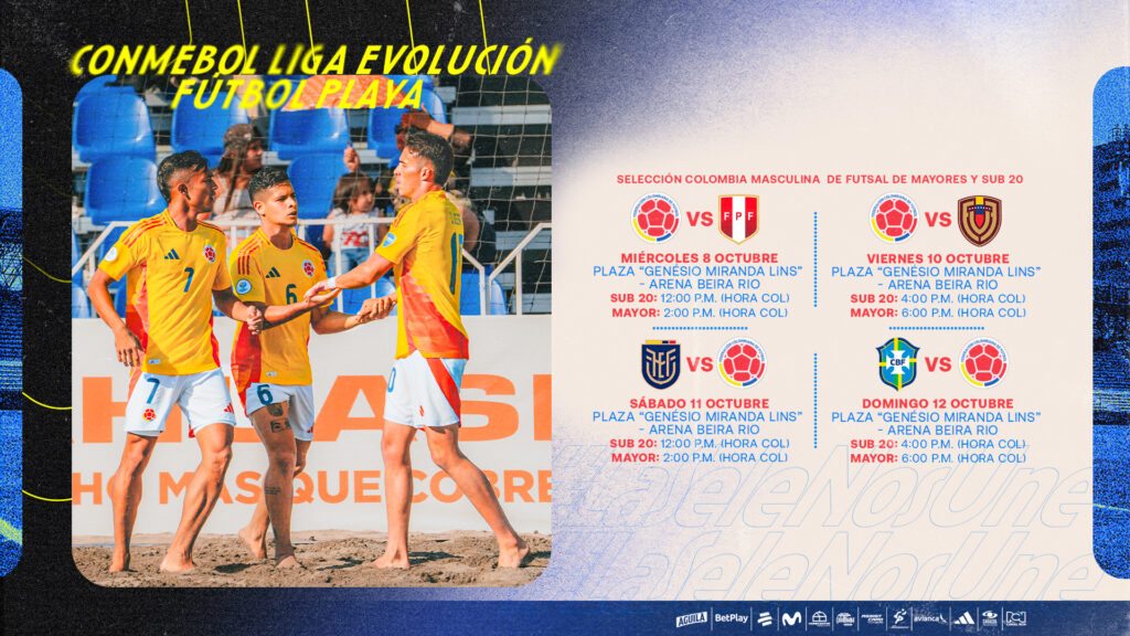 Conozca el fixture de las Selecciones Colombia Masculinas, Sub-20 y Mayores, en la CONMEBOL Liga Evolución de Fútbol Playa – Zona Norte 2025